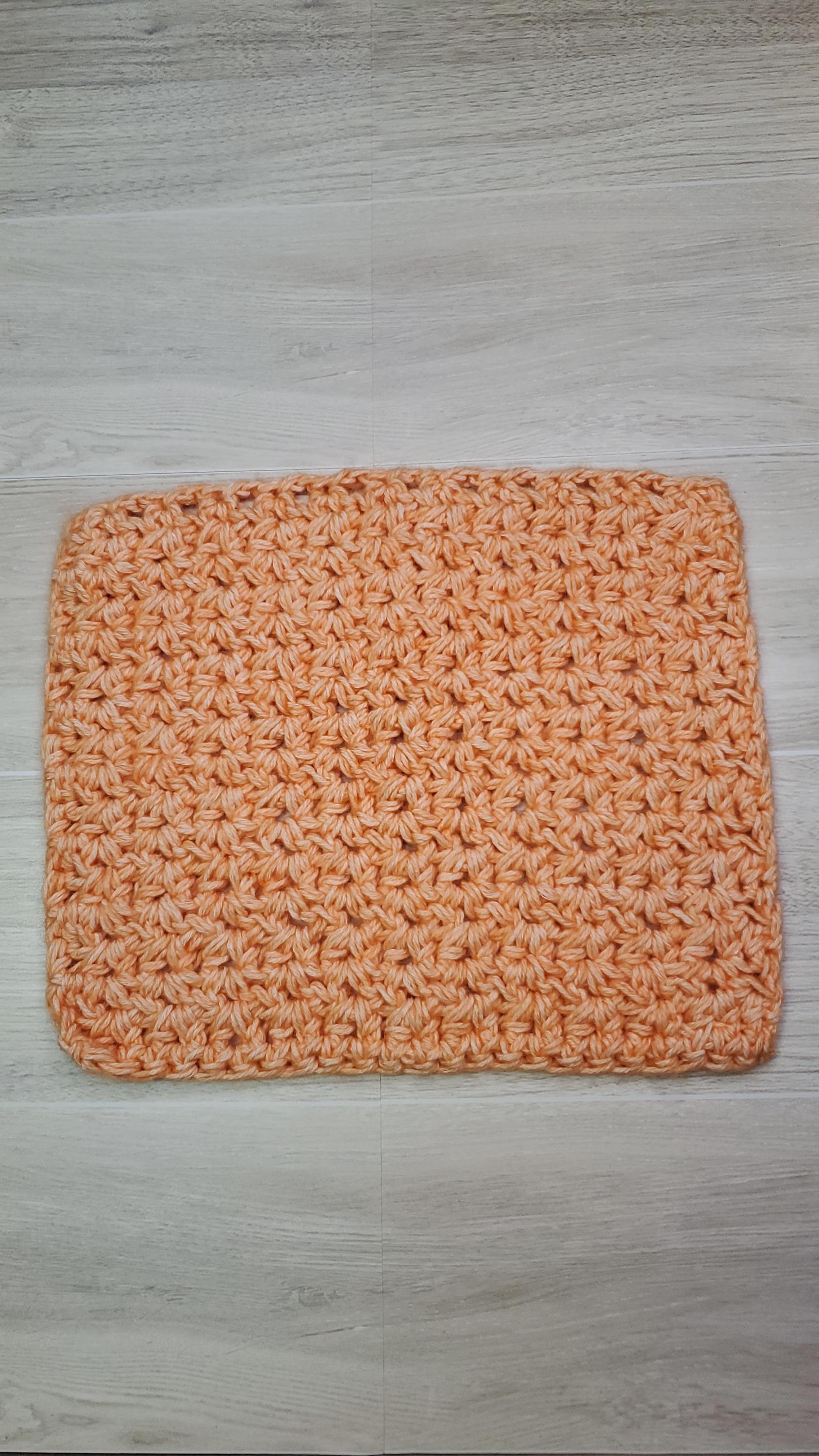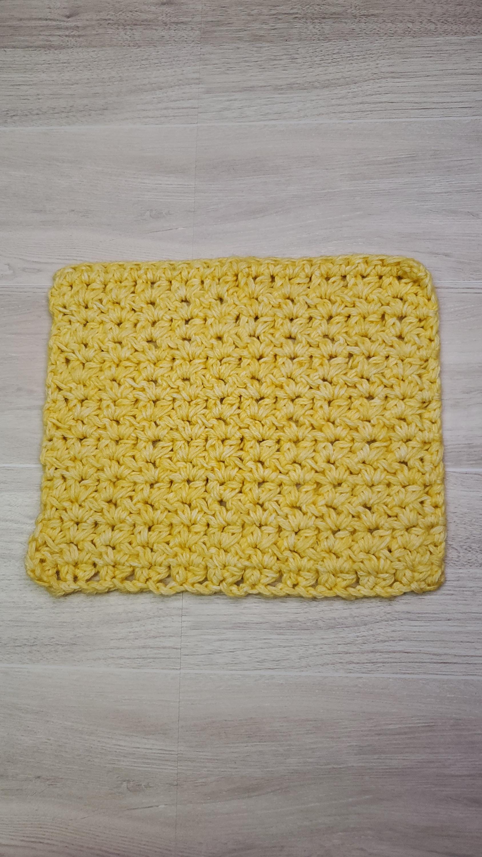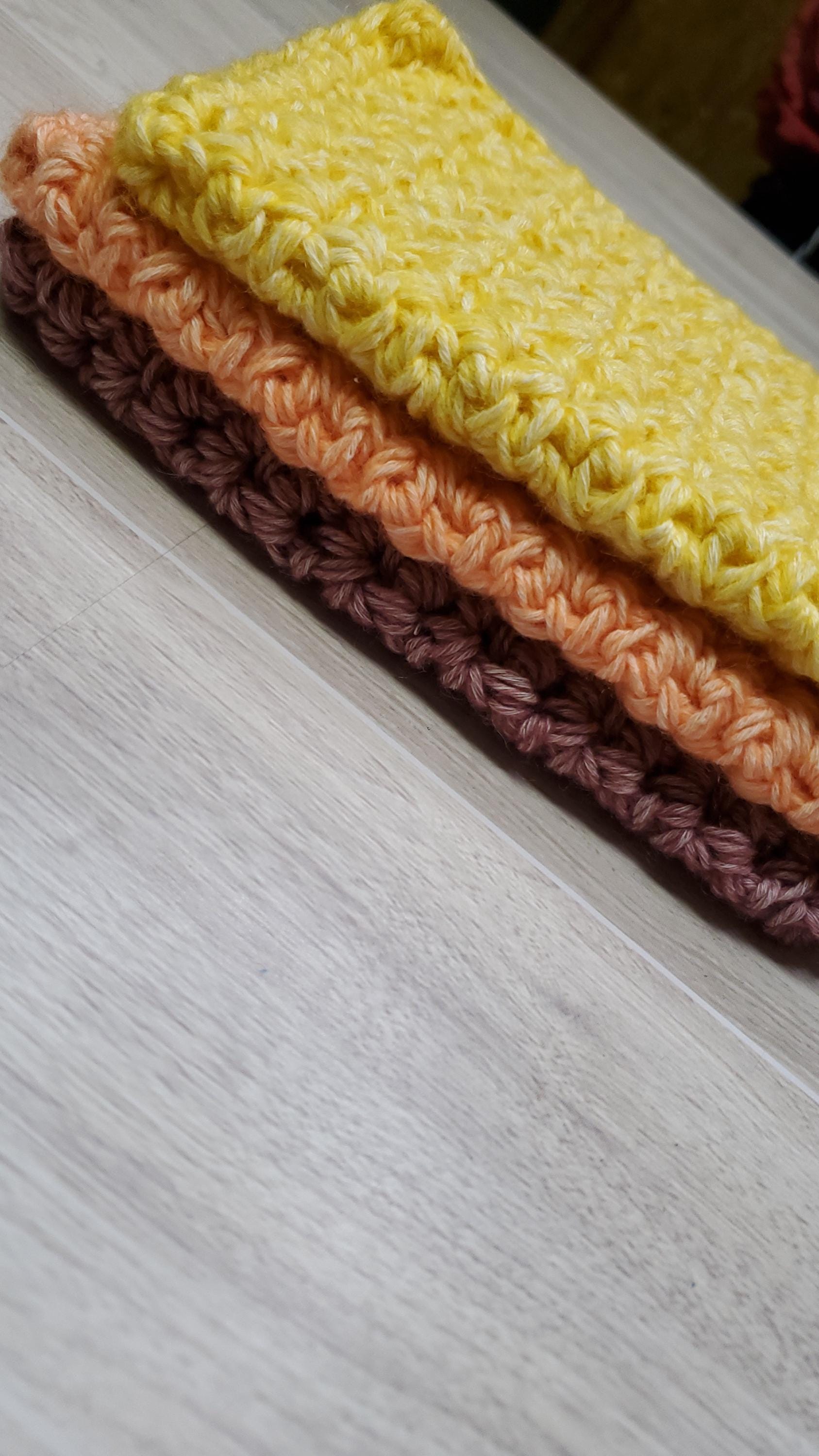 Set of 3 washcloths made with colored cotton yarn. Each cloth is absorbant and thick material. Works great to wash dishes but gentle enough as a facial cloth to remove your makeup. Whatever you use it for, it will work great and durable enough for your washer and dryer. Reusable. Washable. Durable and soft.