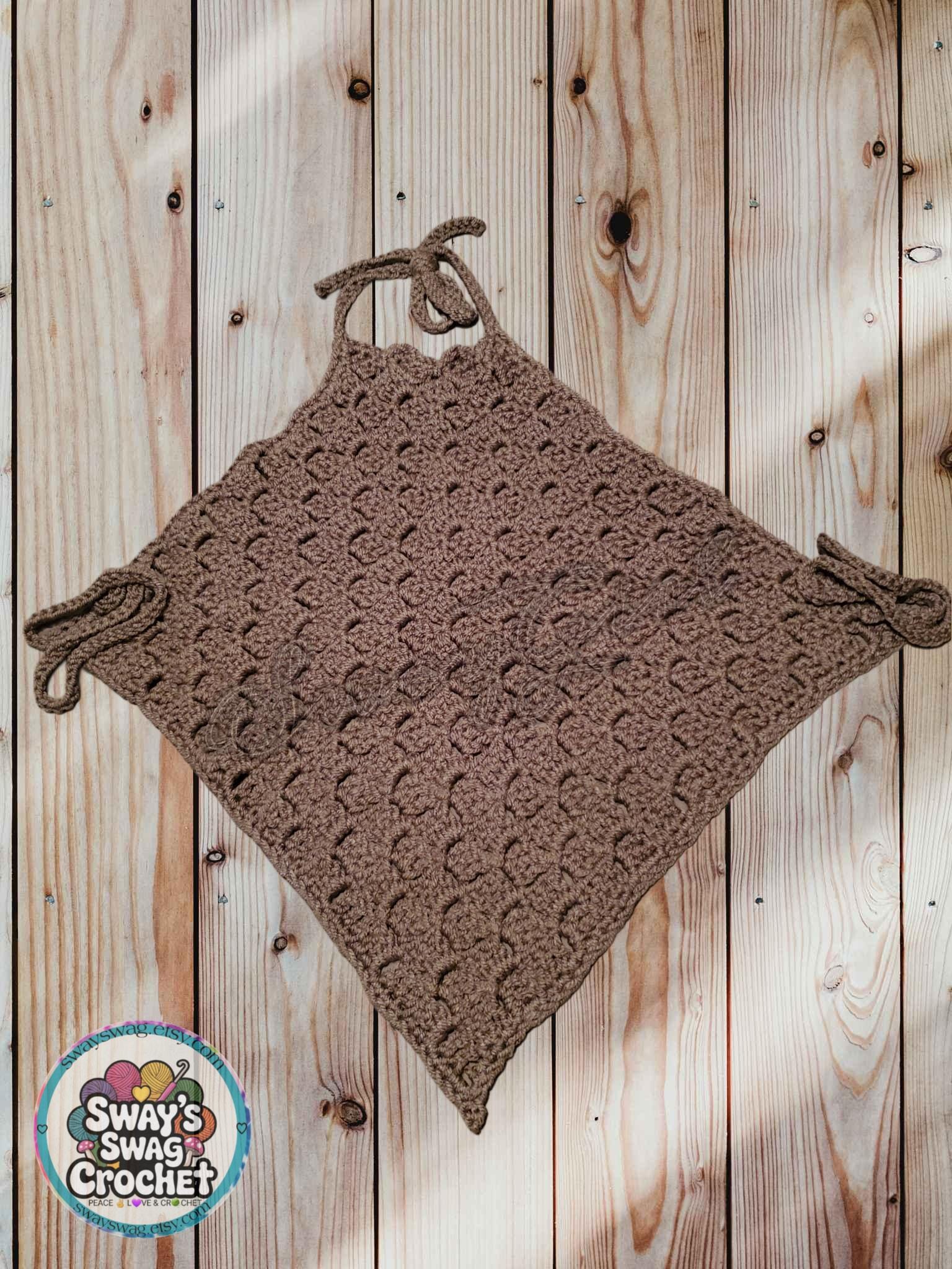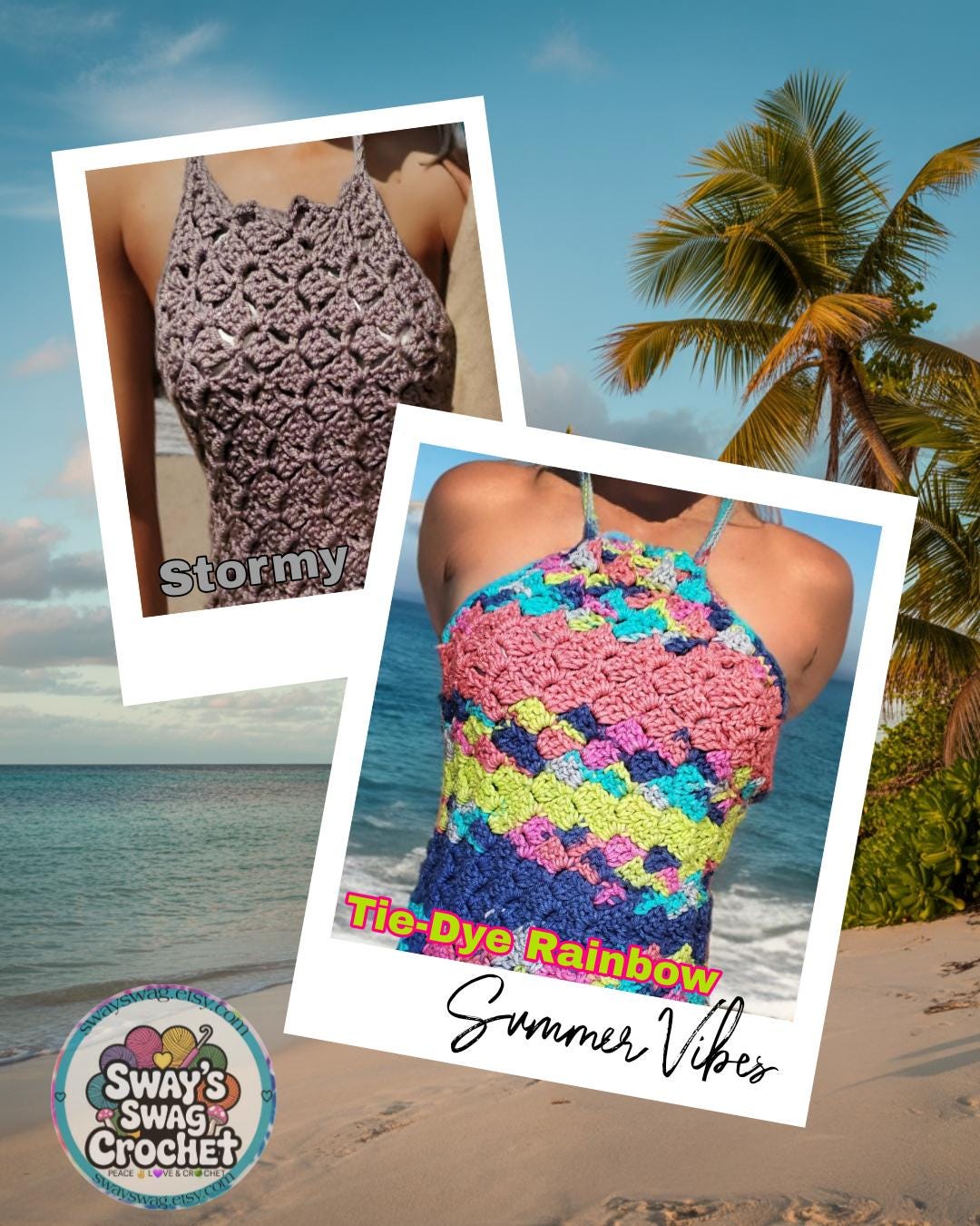 The Diamond Halter Stormy Gray colored Woman's Top is cute and stylish to wear with a pair of shorts on a hot summer day. This halter ties around the neck and torso so it's a "one-size-fits-most" top. (Small-Large)