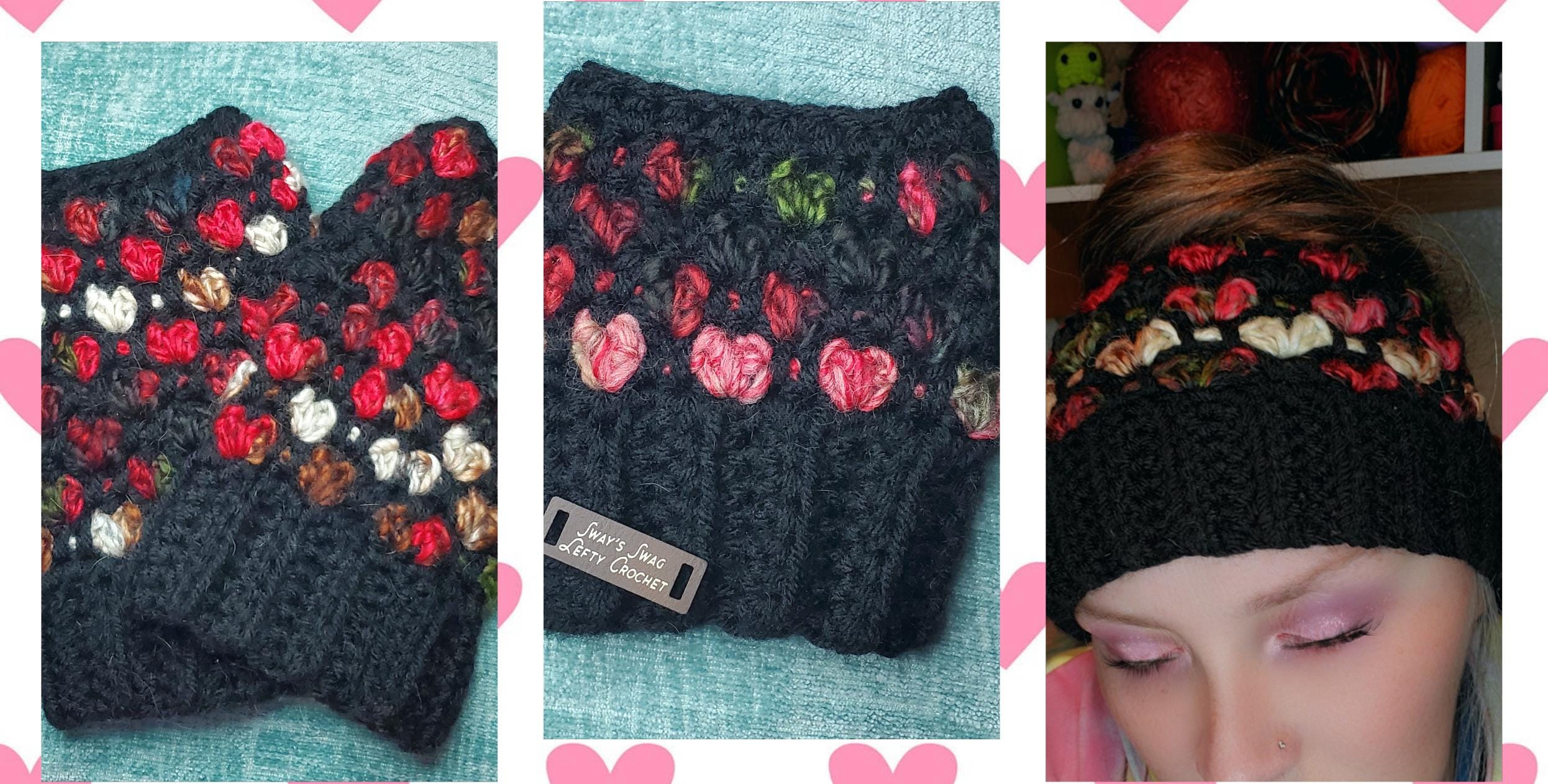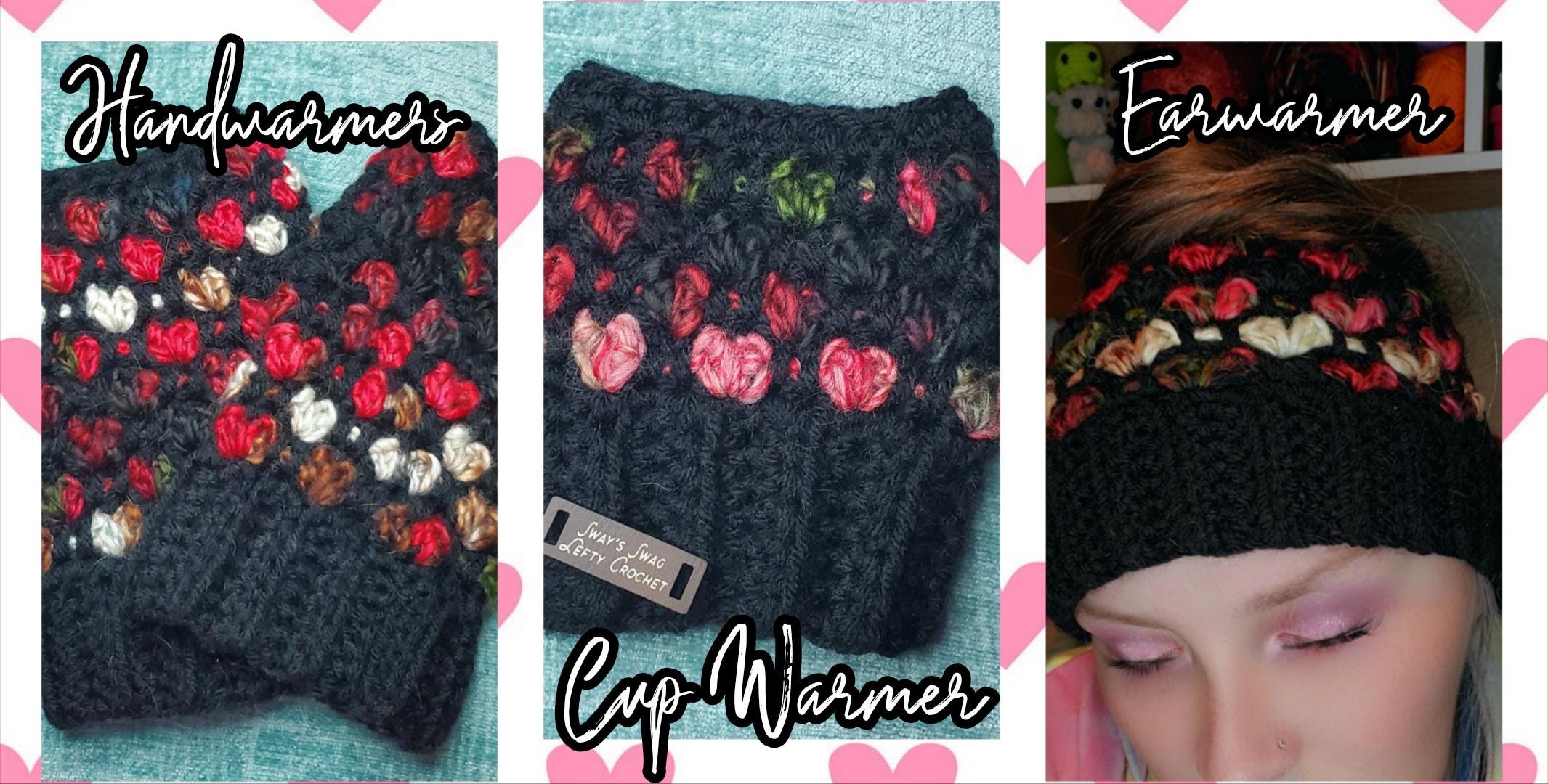Create three stunning, heart-themed designs with this versatile, easy/intermediate-friendly digital 3-in-1 PDF pattern. Perfect for gifting or your own accessories, this bundle includes detailed instructions for a headband Earwarmer, Fingerless Gloves (hand warmers), and a coffee cup cozy (cup warmer).