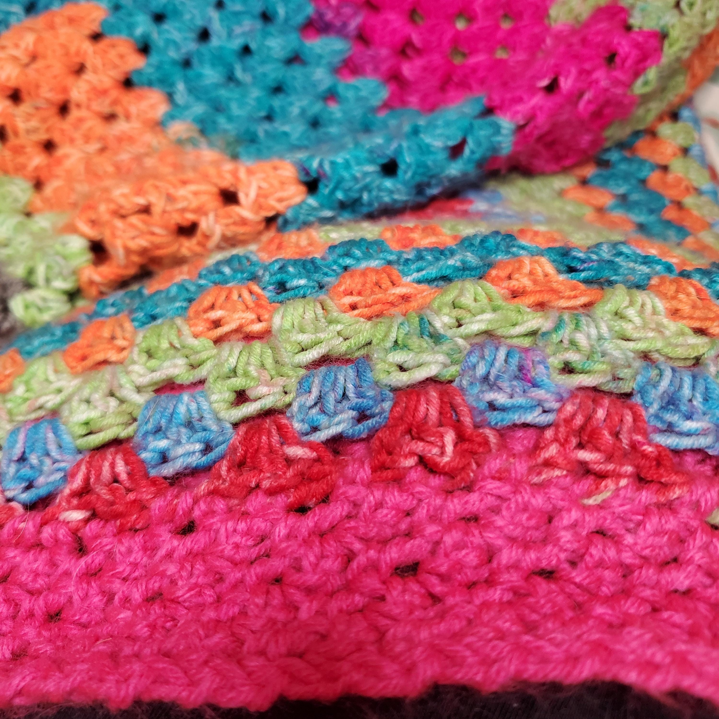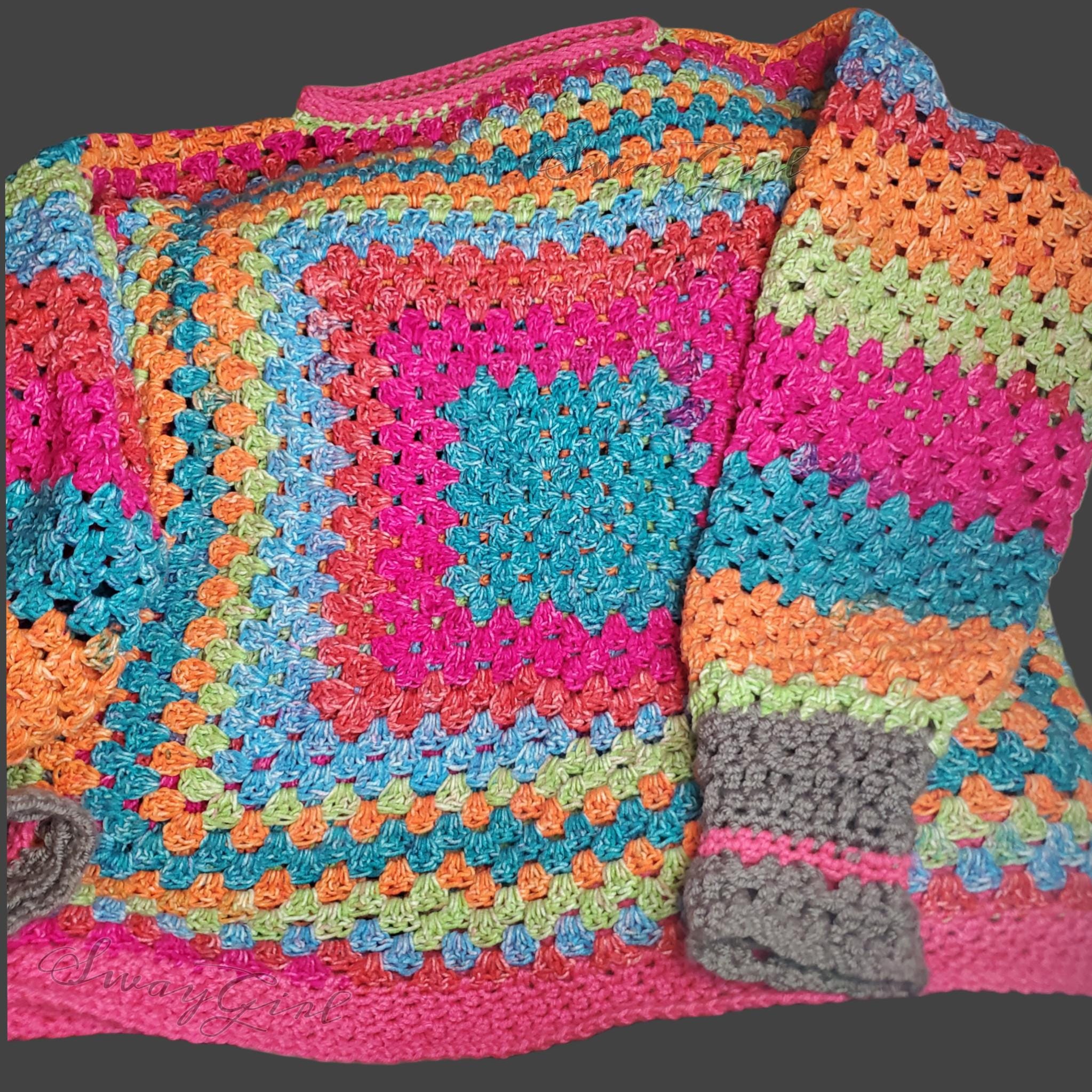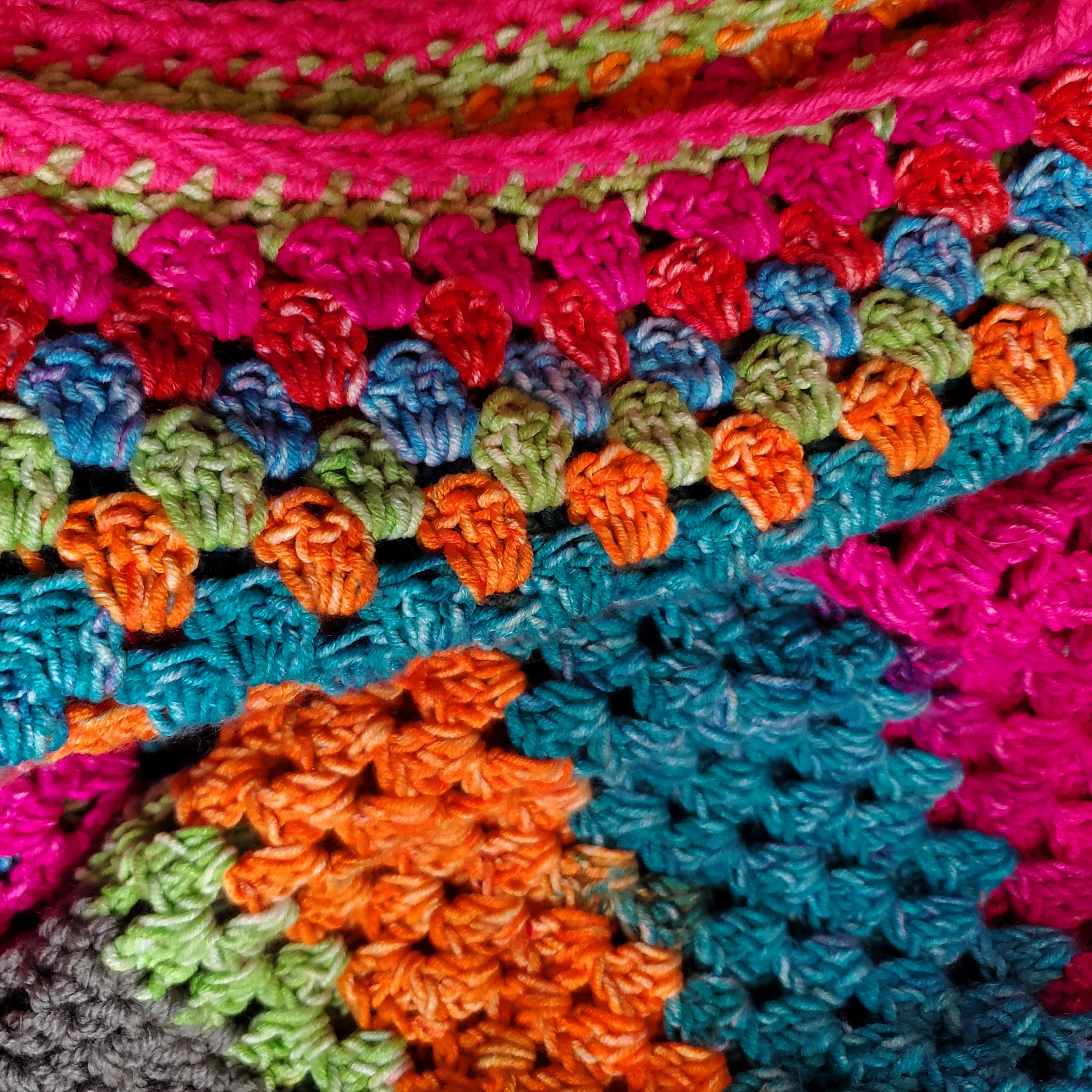 Stitch Work: Expertly crafted using a traditional granny cluster stitch, creating a beautiful texture and a classic "granny square" geometric flow.